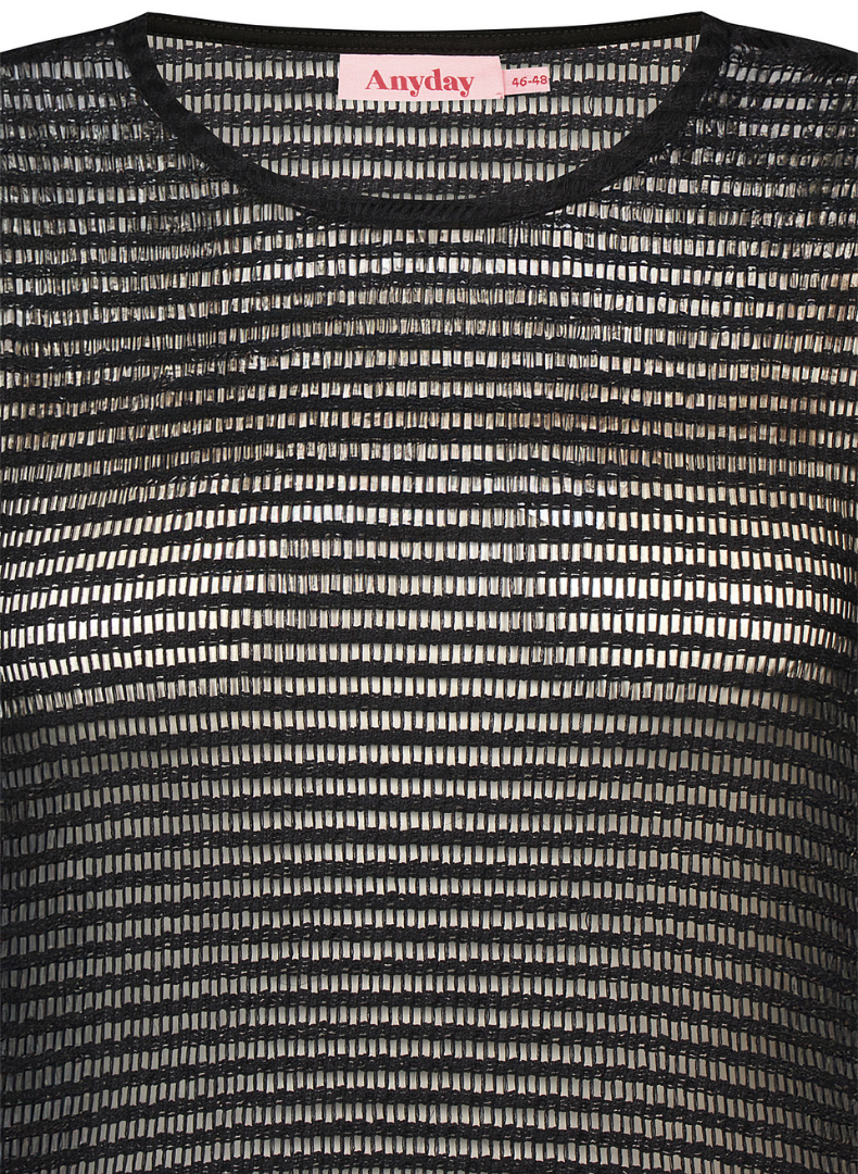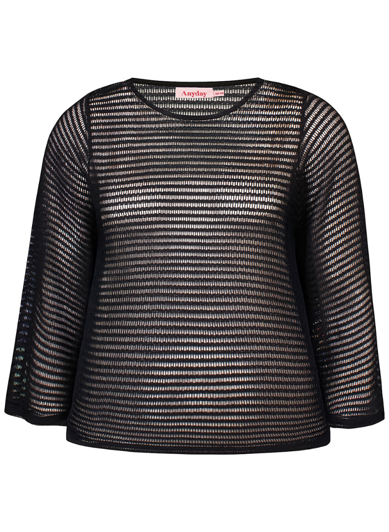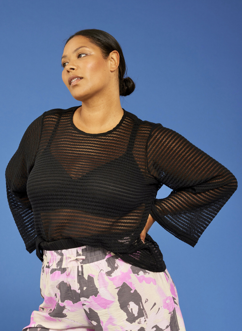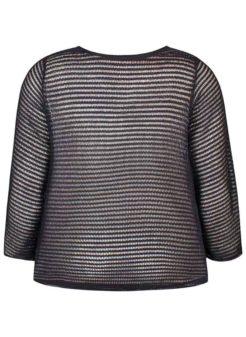 Létt fínleg peysa eða neta toppur með lausu sniði og síðum ermum.