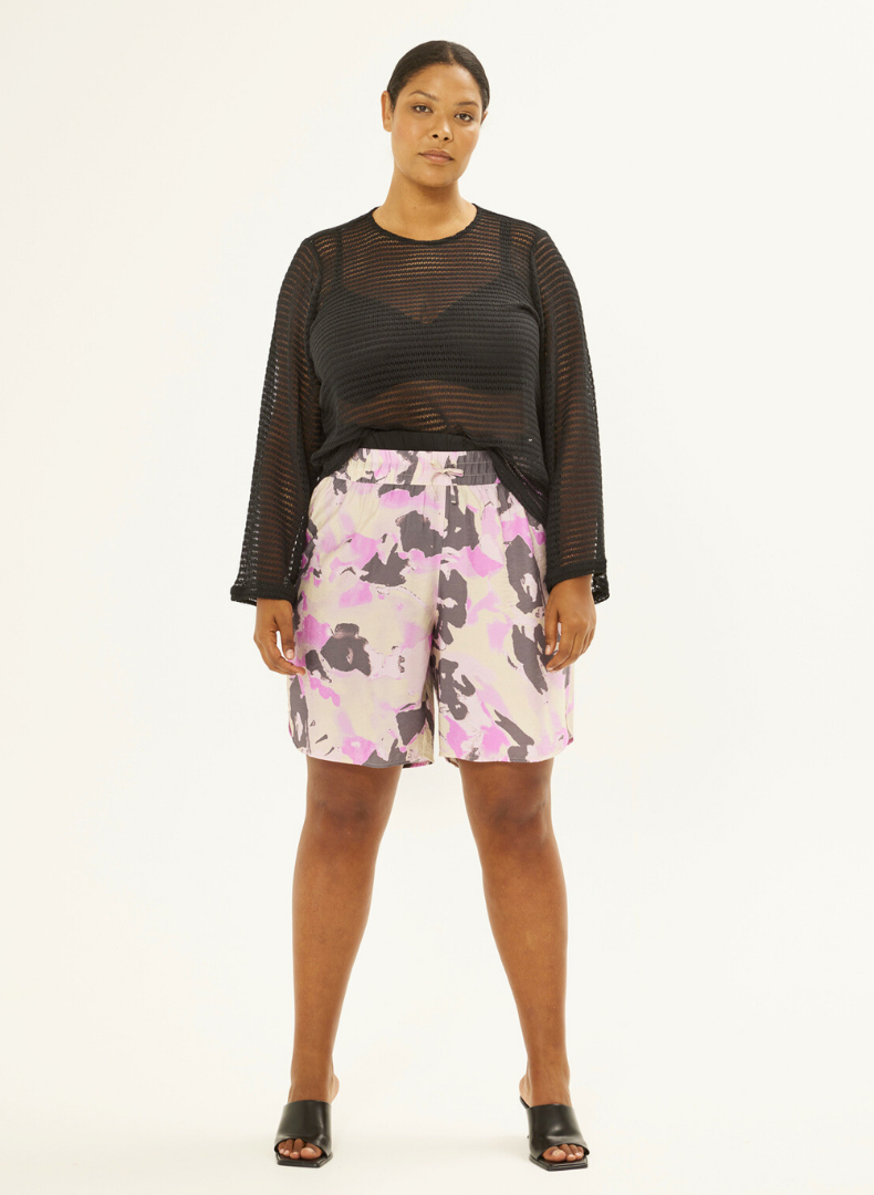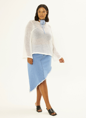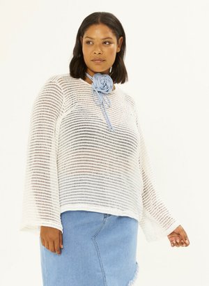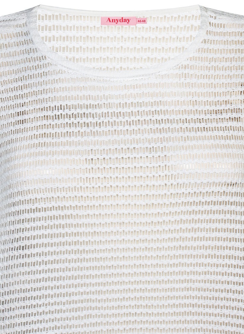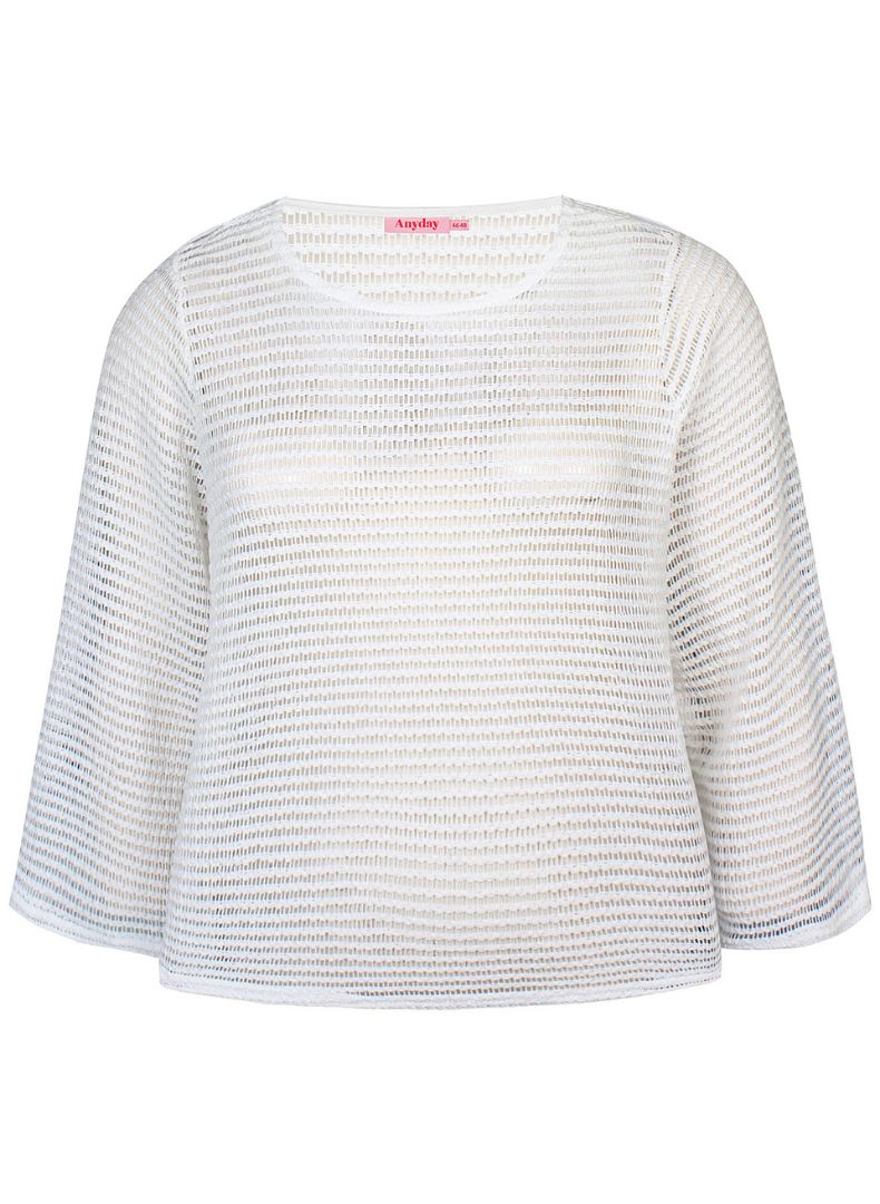 Létt fínleg peysa eða neta toppur með lausu sniði og síðum ermum.