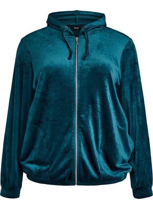 Súper kósý rennd hettupeysa úr velúr línu Zizzi.