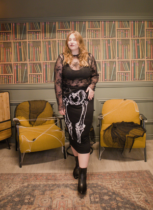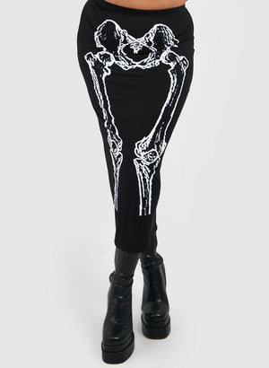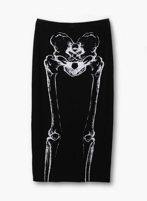 Aðsniðið millisítt pils með áprentuðu neðri part á beinagrindinni.