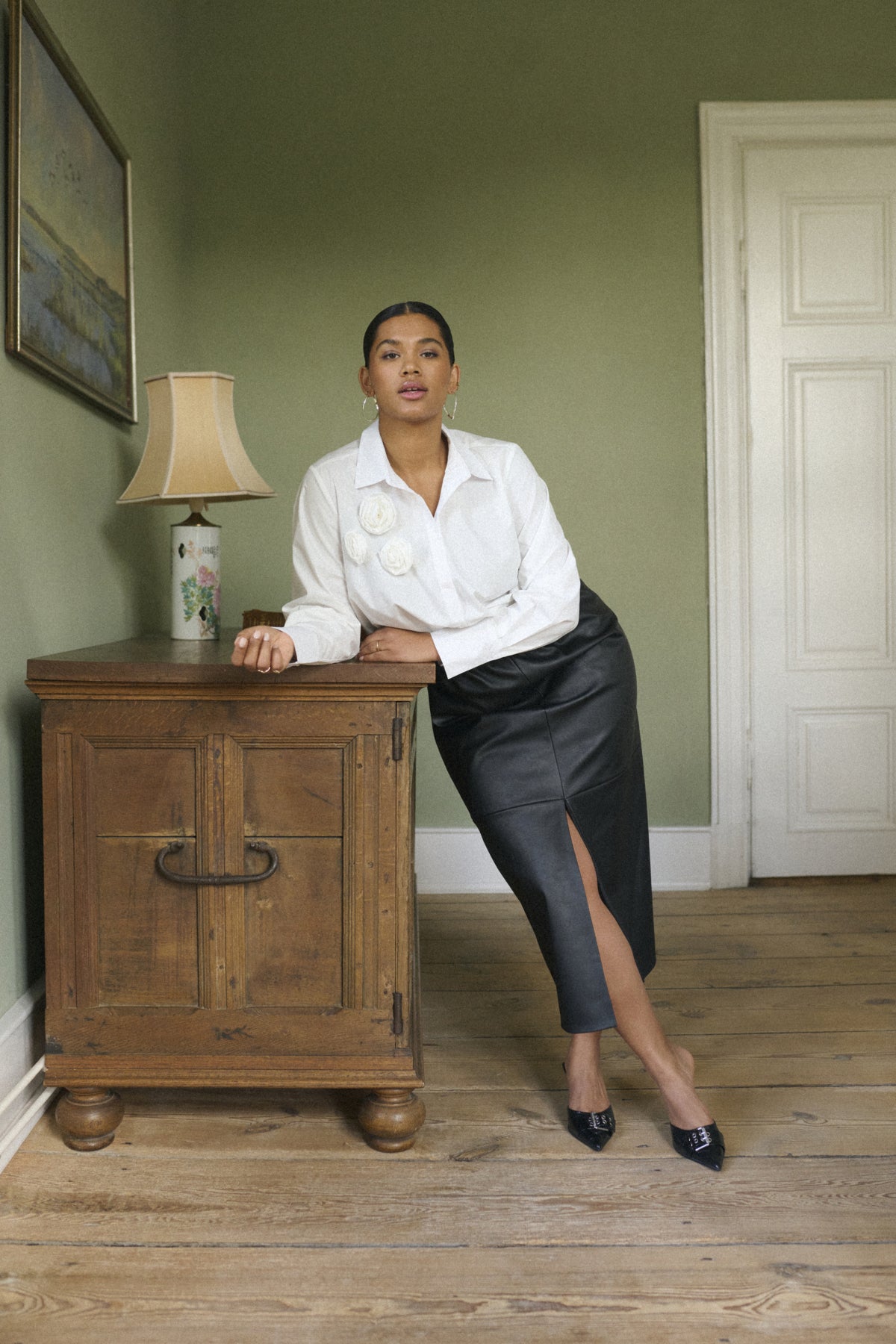 Geggjað Pu-leður pils frá Kaffe Curve.