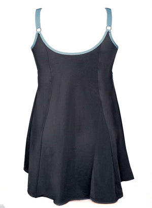 Síður tankini toppur, Klæðilegt A-snið og með smá gylltu munstri í bland við svart