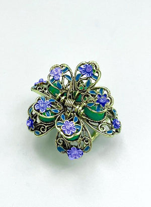 Falleg og smágerð hárklemma með túrkísbláum og grænum steinum.