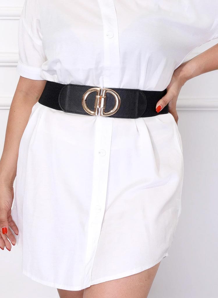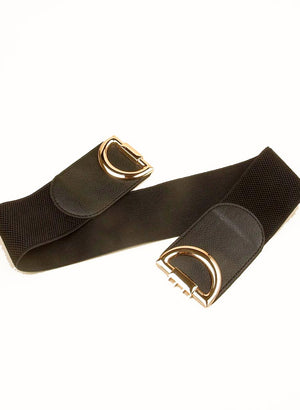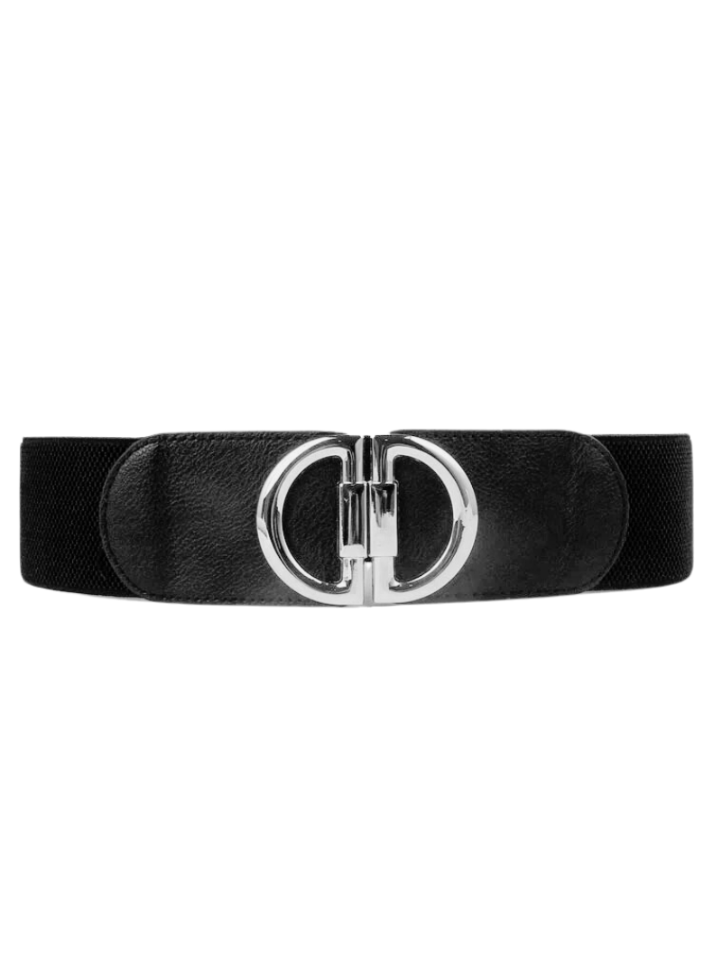 Klassískt teygjubelti með smellu að framan. Einlit teygja með sylgjum í silfur eða gylltu.