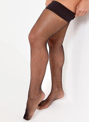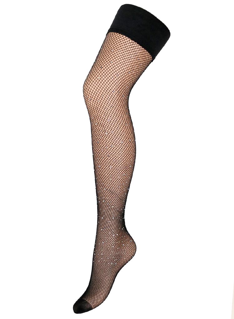 Sexy háir neta sokkar með litlum silfruðum steinum.