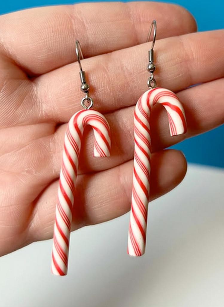 Eyrnalokkarnir eru eins og jólastafur í laginu úr leir og málmblöndu