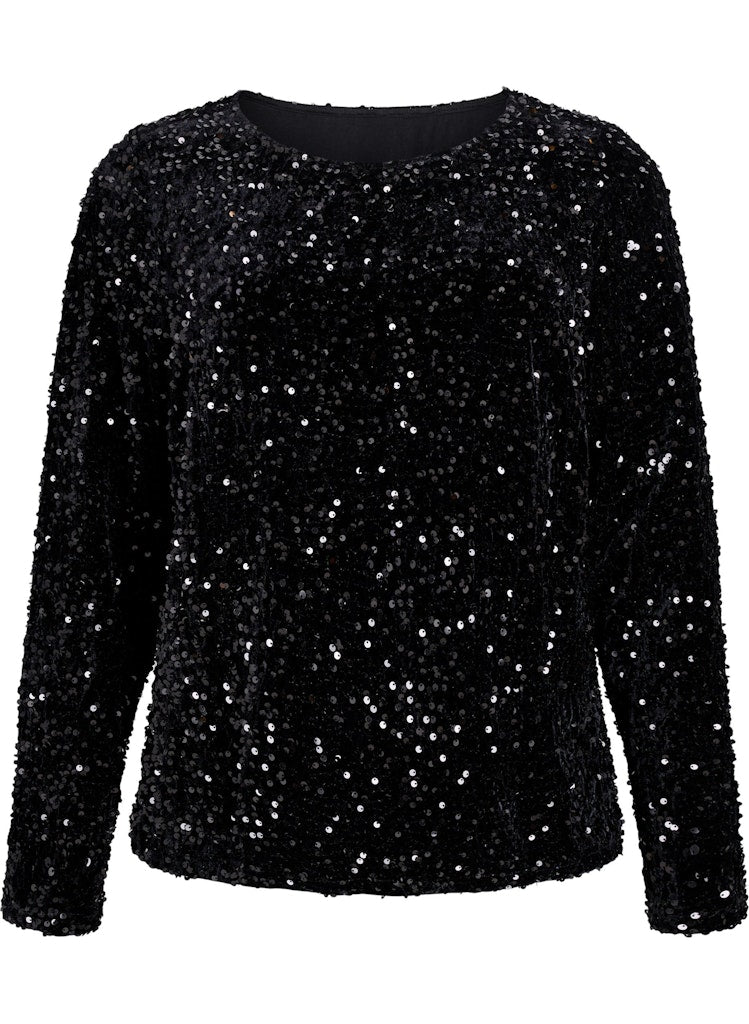 Toppurinn er úr tvöföldu efni svo pallíetturnar stinga ekki.