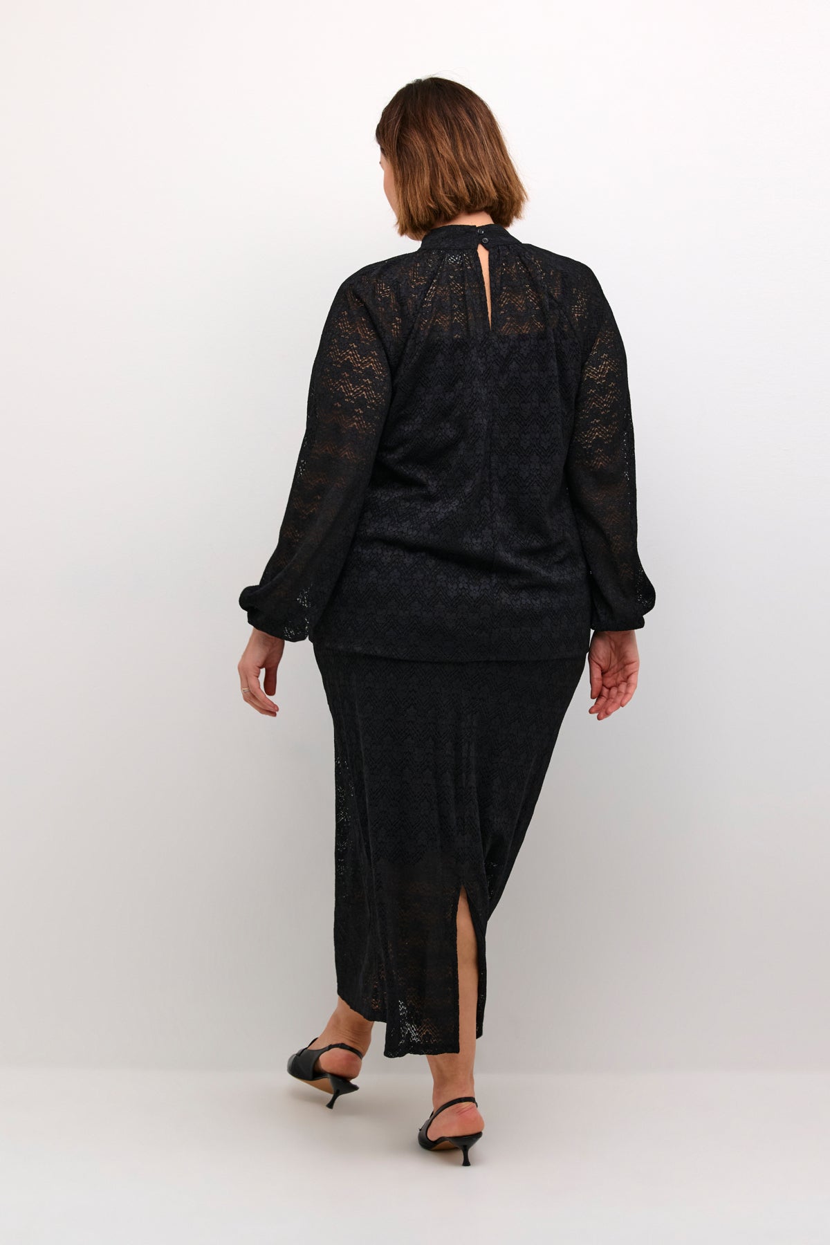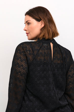 Fínleg hálfgegnsæ blúndu blússa frá Kaffe Curve.