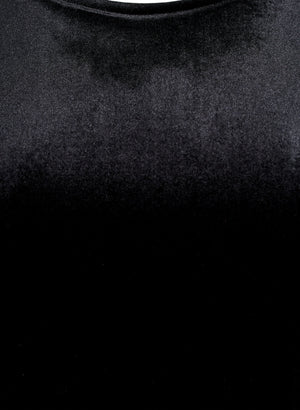 Efnið er mjúkt og teyganlegt velúr 95% Polyester, 5% Elastane.