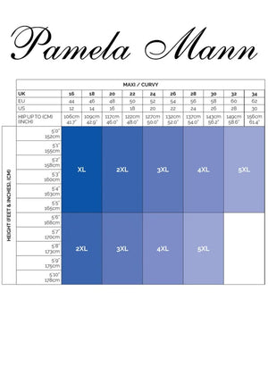 Flettu í gegnum myndirnar til að skoða stærðatöfluna hjá Pamela Mann.