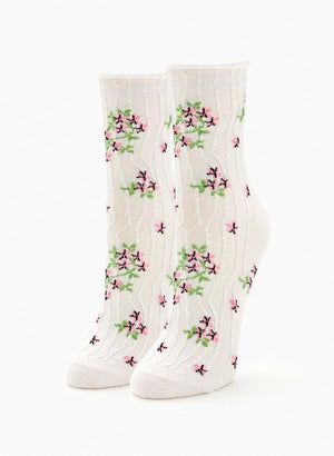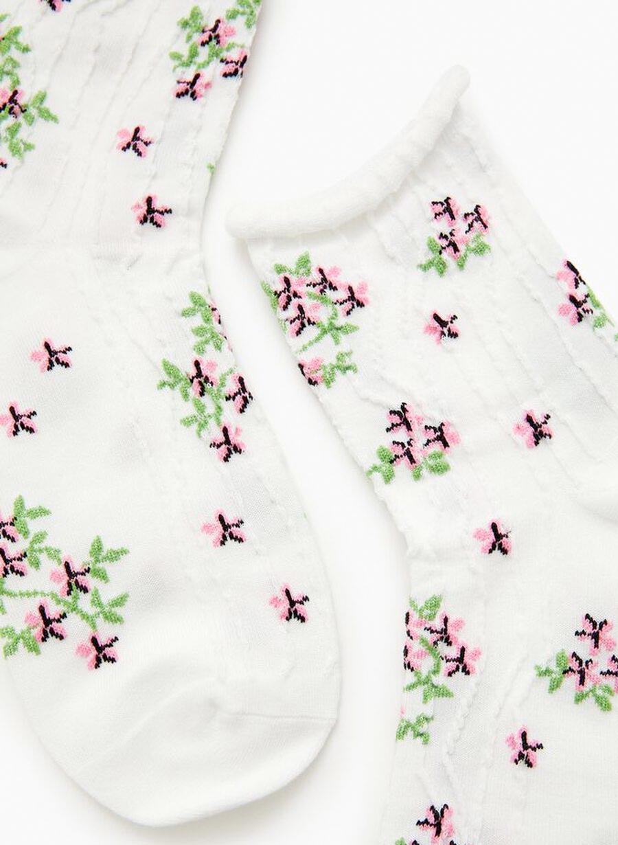 Hvítir í grunninn með fínlegu prjónamynstri og bleikum blómum.