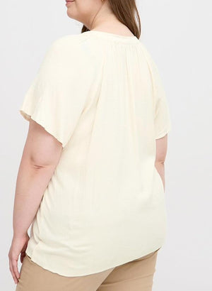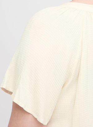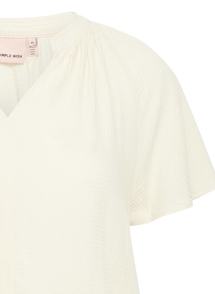 Laust snið, V-hálsmál og lausar stuttar ermar.