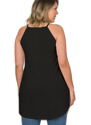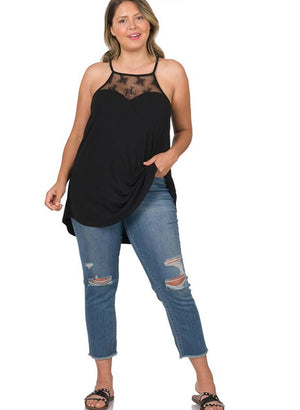 Sætir síðir toppar með grönnum halter hlýrum og háu blúndu hálsmáli.