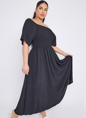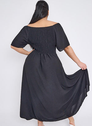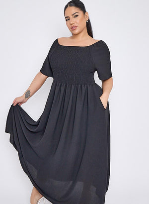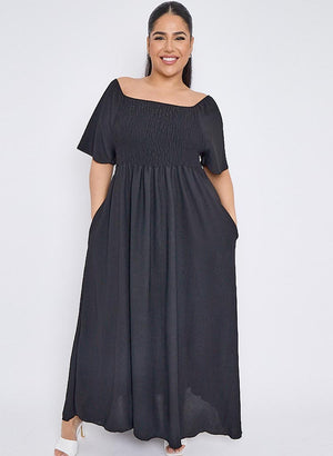 Svartur síður kjóll úr léttu náttúrulegu efni.