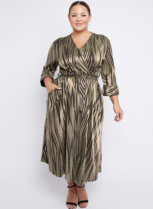 Kjóllinn kemur í einni stærð sem passar á stærðir frá 44-52 , og svo fylgir beltisborði með til að þrengja kjólinn meira saman í mittinu.