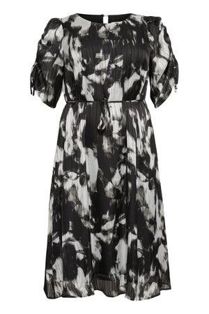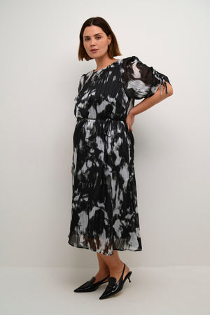 Kjóllinn er úr fínlegu polyester siffon efni og fóðraður viscose efni.