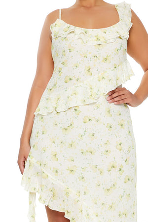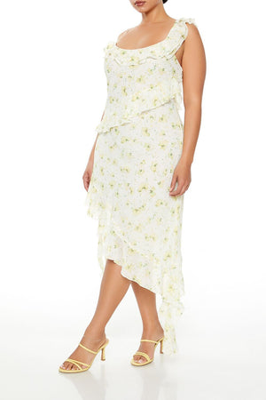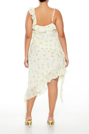 Ótrúlega fallegur og sumarlegur sparikjóll með grönnun stillanlegum hlýrum og pífu skrauti öðru megin.