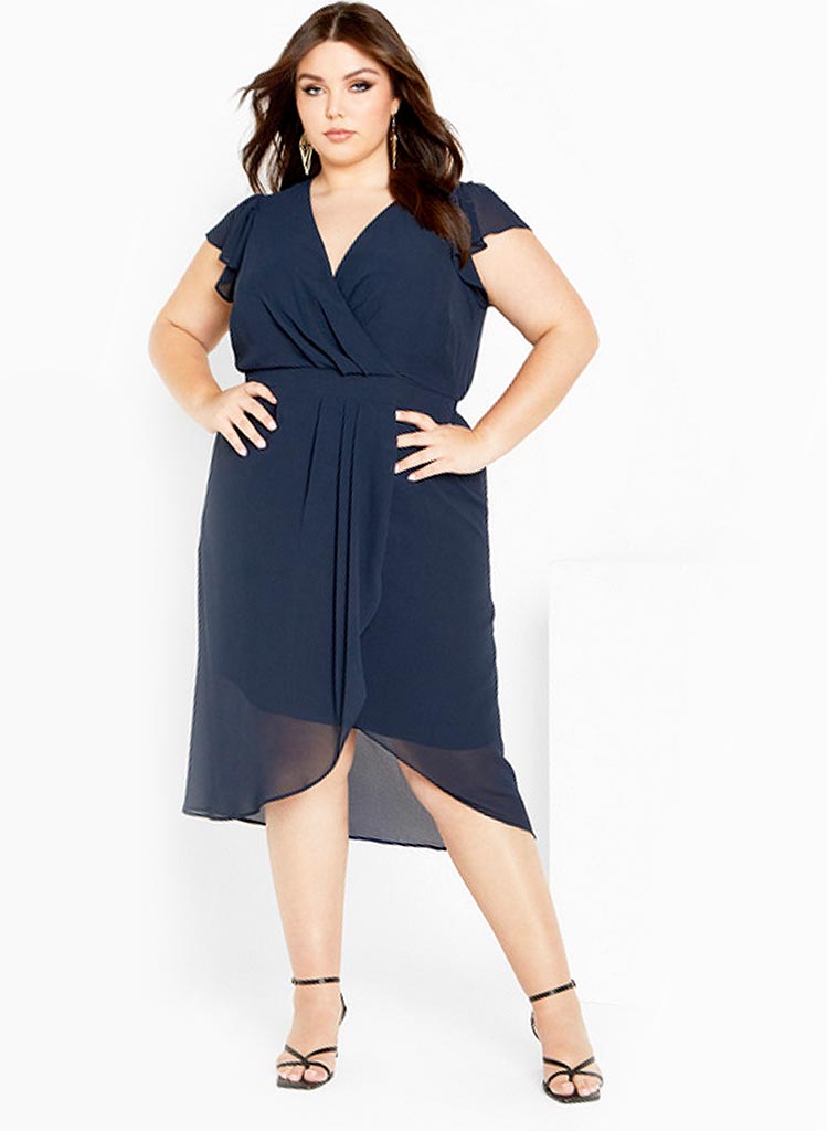 Kjóllinn er nokkuð síður og hentar þá líka hávöxnum skvísum.