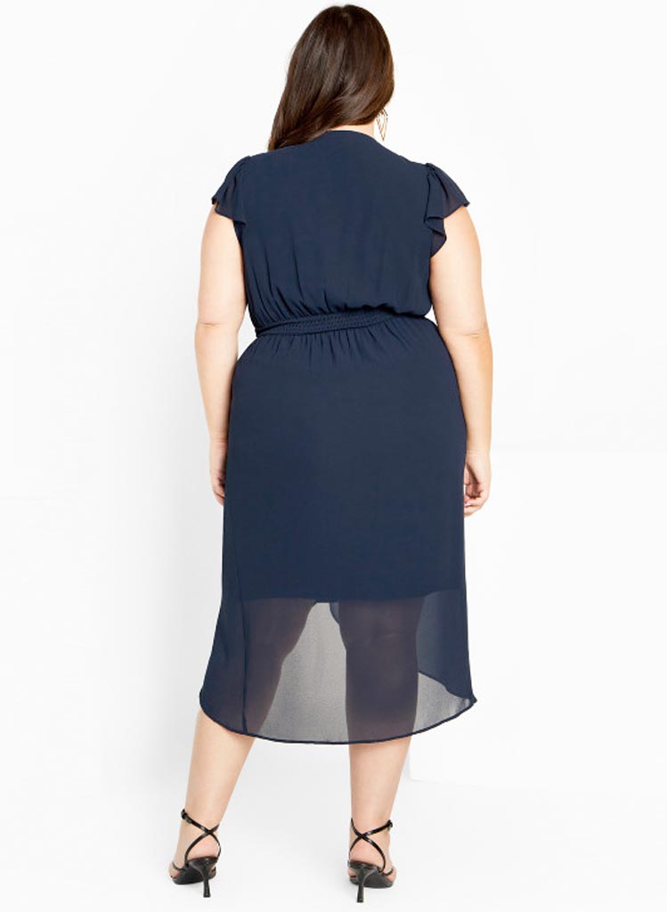 Efnið er tveggjalaga, Annarsvegar polyester siffon sem er í ytralaginu og svo undir kjóllinn úr mjúku teygjanlegu efni.