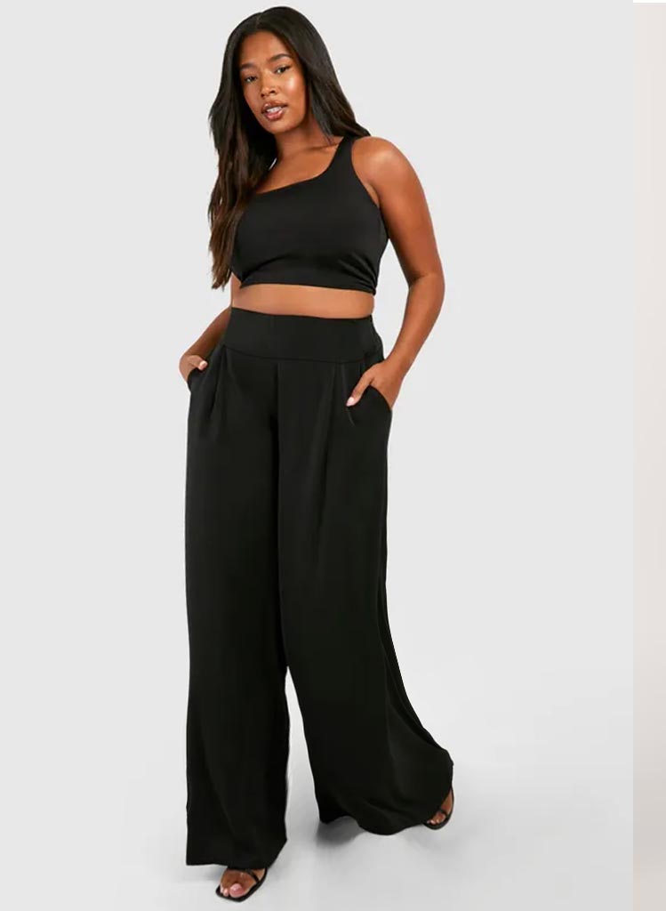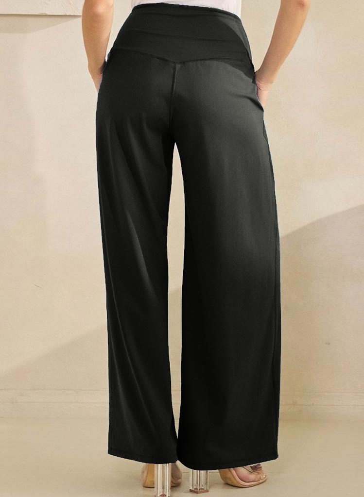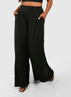 Ótrúlega þægilegar teygjubuxur með extra háum bekk uppí mittið , lausum víðum skálmum og vösum á hliðinni.