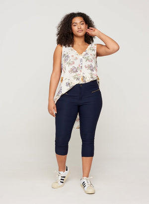 Eitt af vinsælustu stretch buxunum okkar sem koma frá ZIZZI í styttri úgáfu fyrir sumarið.