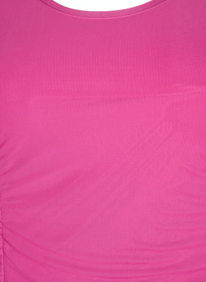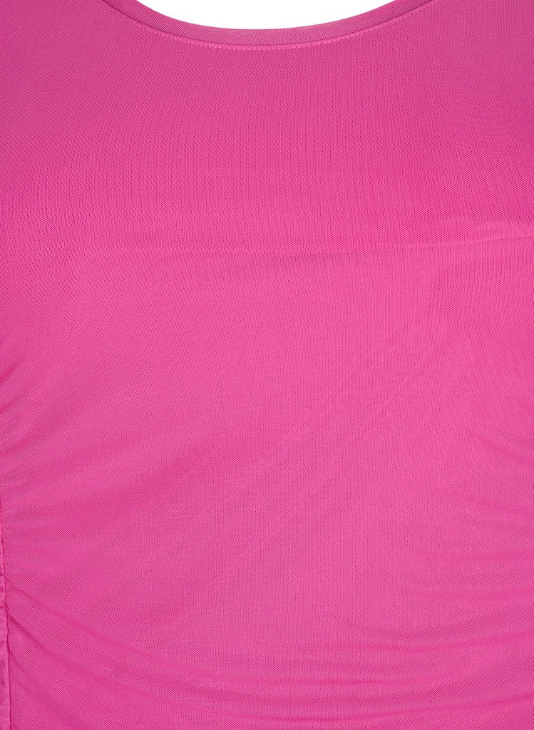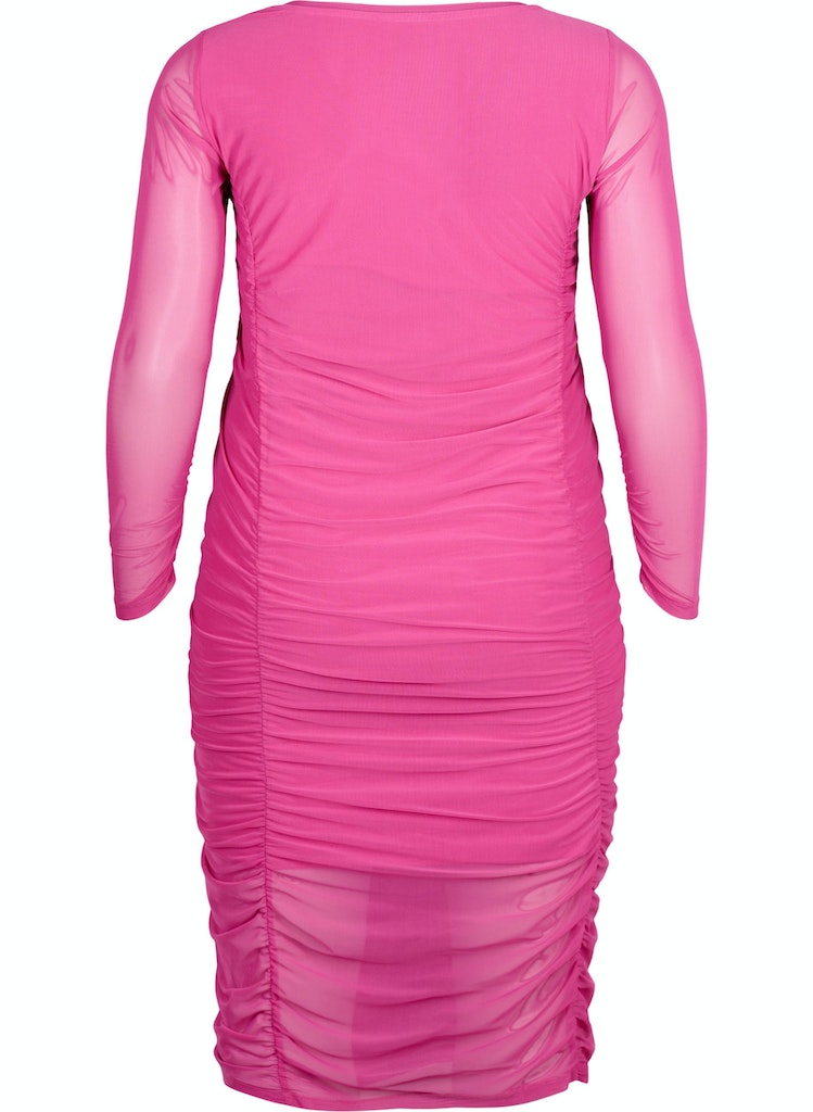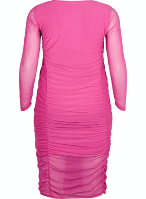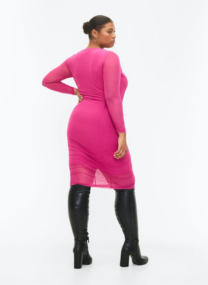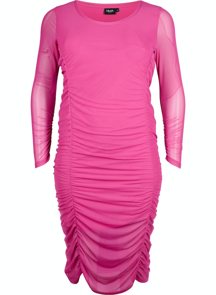 Fínlegt og vandað mesh efni í fallegum bleikum lit og undirkjóll úr dásamlega mjúkri viscoseblöndu.
