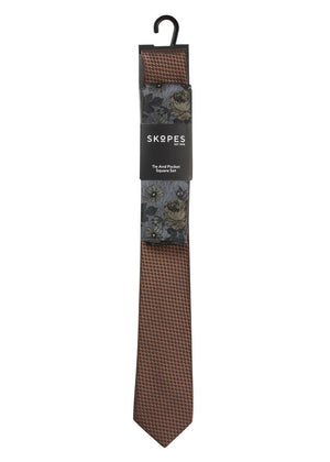 Brons brúnt mynstrað bindi og klútur frá lúxusmerkinu Skopes.