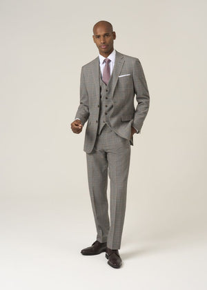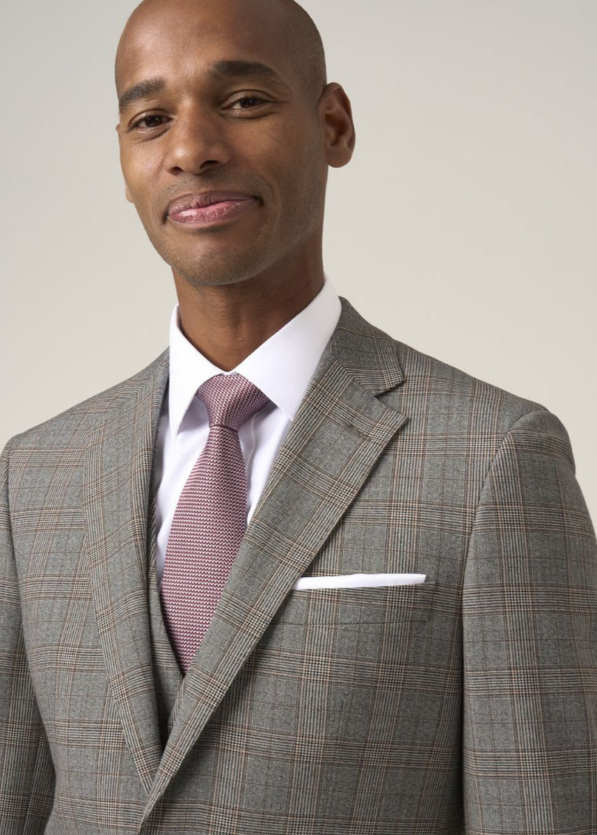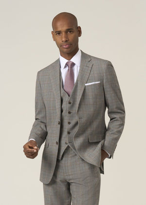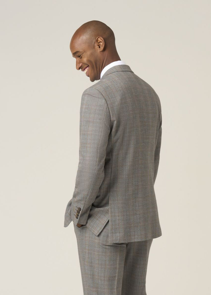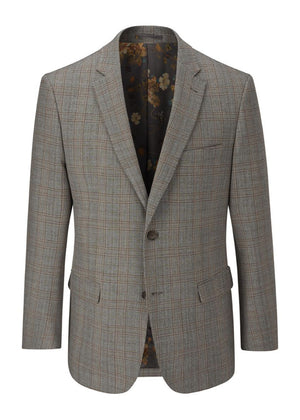 Haley jakkinn er teinóttur í mildum brúnum tónum.
