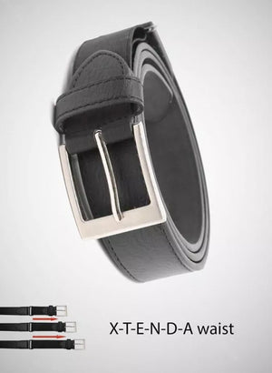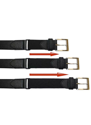 Efnið í beltinu er leðurlíki og við sylgjuna kemur 8 cm löng teygja sem gerir beltið extra þægilegt.
