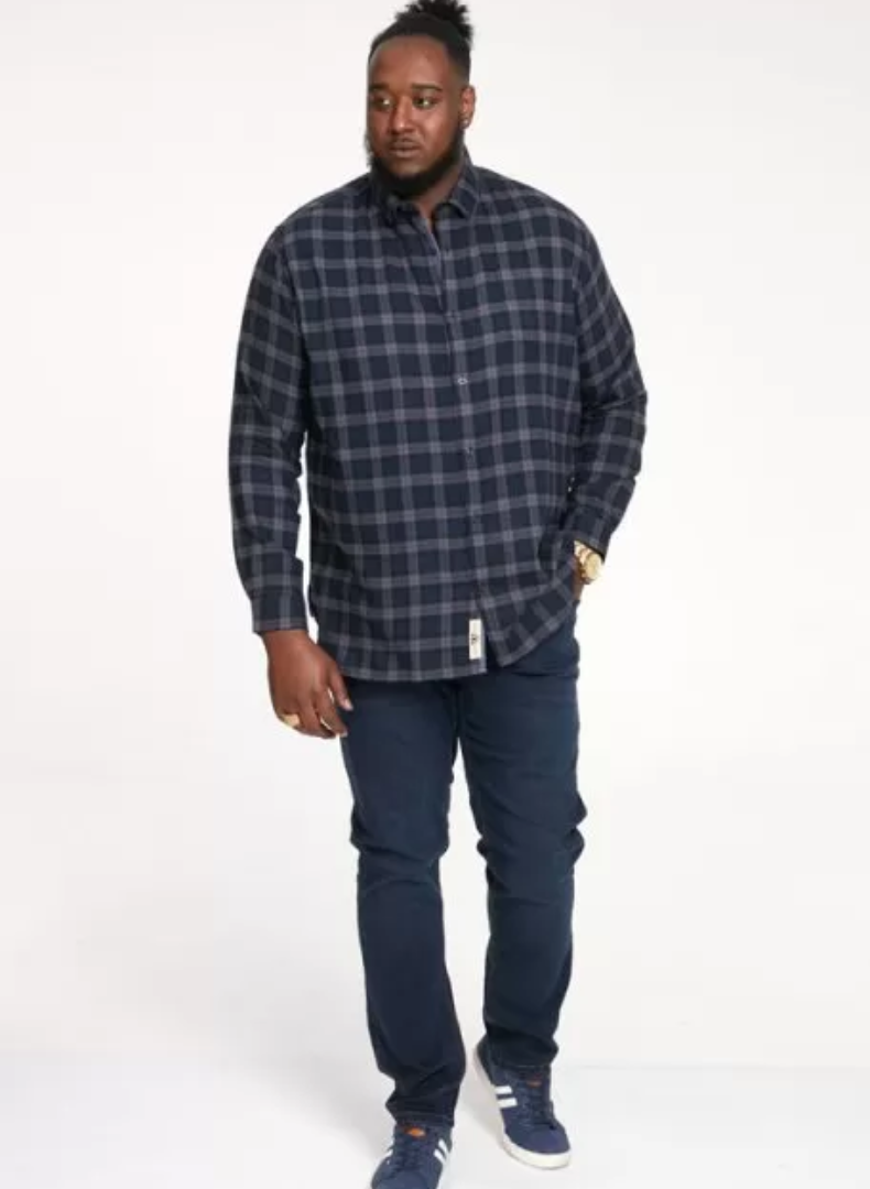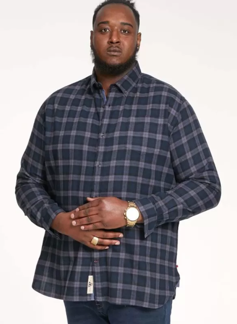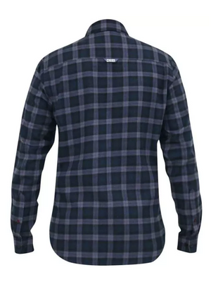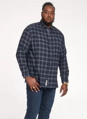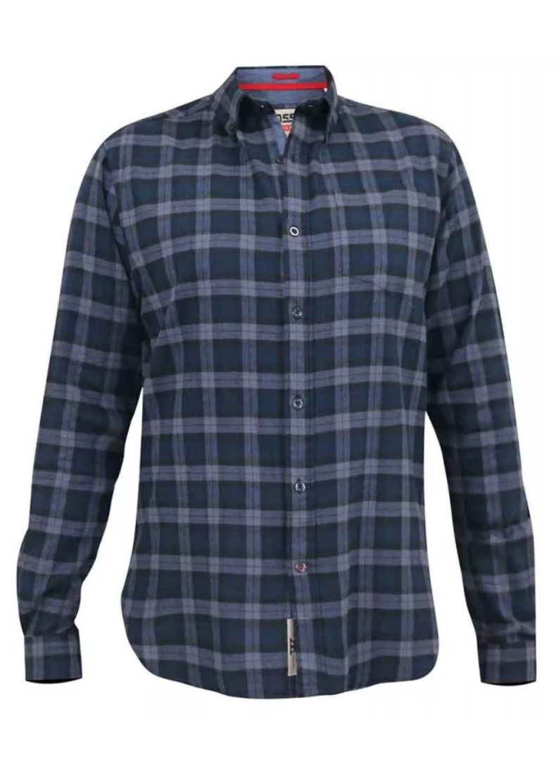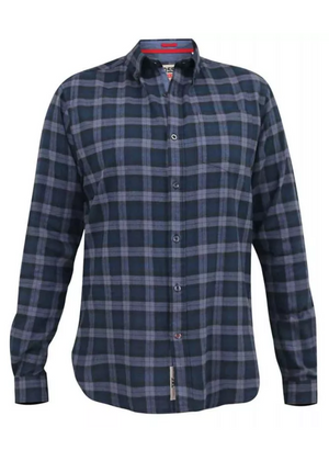 Skyrtan er dökkblá í grunninn með dökk fjólubláu köflóttu mynstri.
