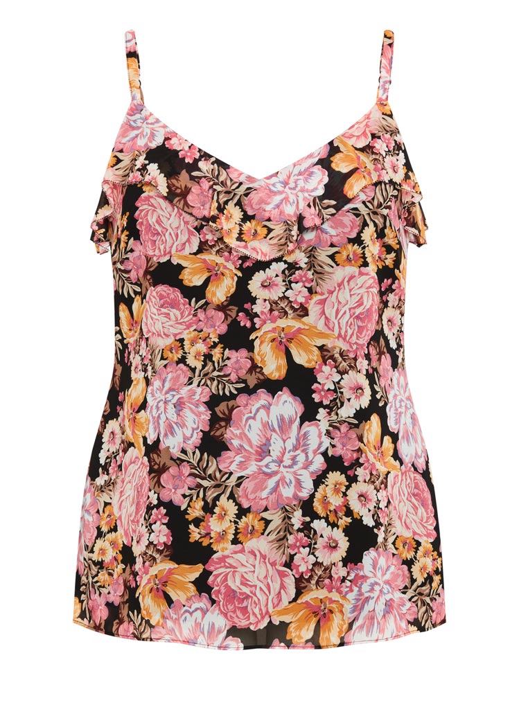 Toppurinner með stillanlegum hlýrum , v-hálsmáli og sætri pífu við hálsmálið.