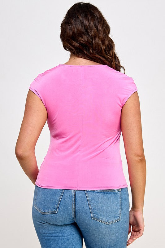 Sætur toppur með kassalaga hálsmáli og tvöföldu efni að framan.