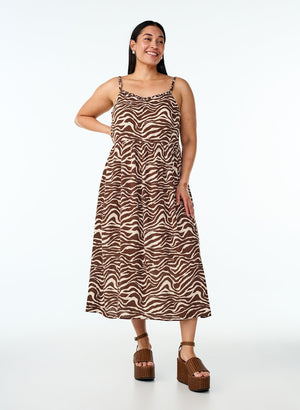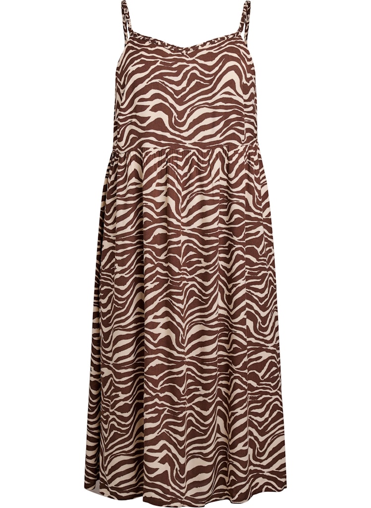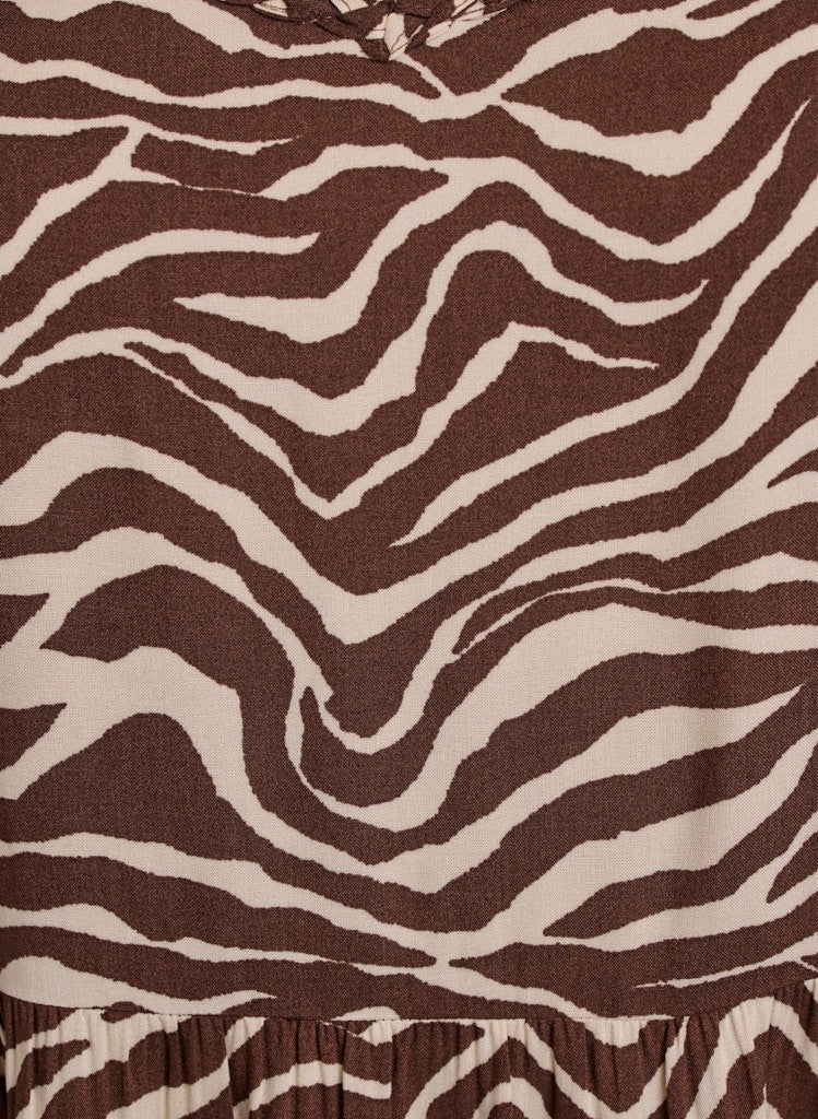 Efnið er í mildum jarðtónalitum og zebra mynstri