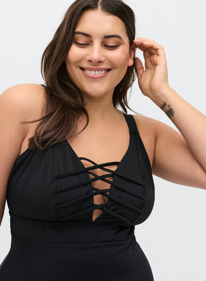 Klassískur sundbolur með sexy kriss-kross reimum að framan.