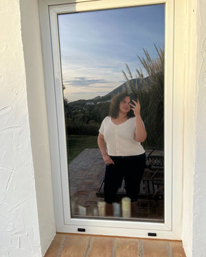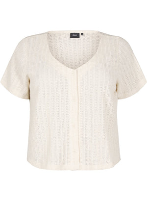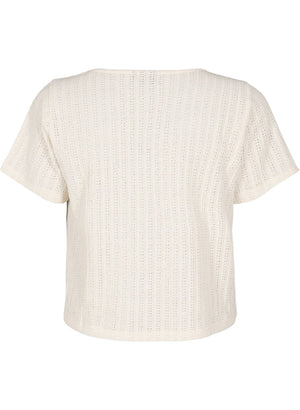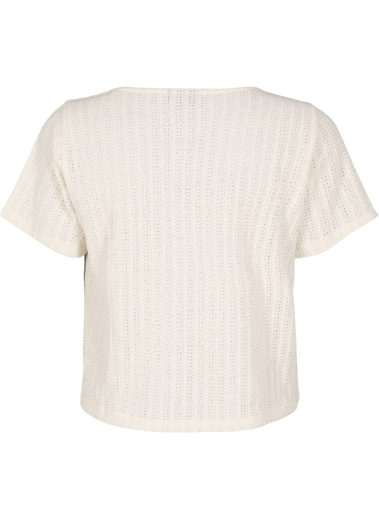 Fínlega prjónuð ljós stuterma peysa eða golla fyrir sumarið frá danska merkinu Zizzi!