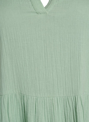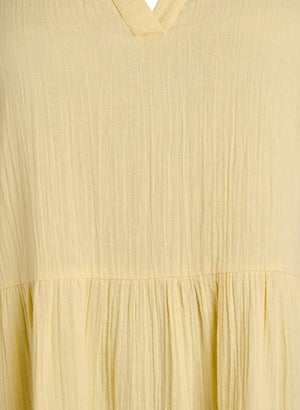 Túnikan er með stuttum ermum, V-hálsmáli og sætu blúnduskrauti við hálsmálið.