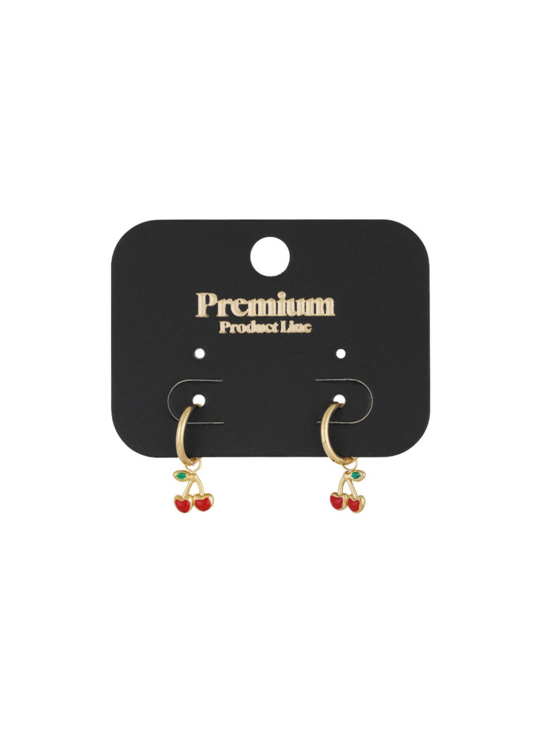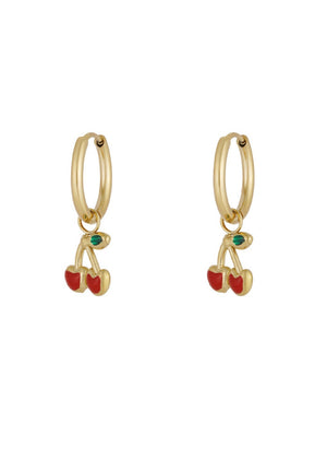 Smáir gylltir hringir með hangandi litlum kirsuberjum í stíl við Love Cherry hálsmenið og armbandið.