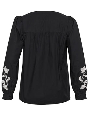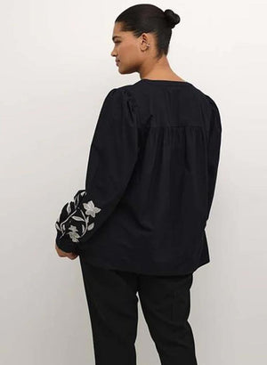 Skyrtan er kragalaus með síðum lausum ermum og virkilega fallega bróderað mynstur á ermunum.