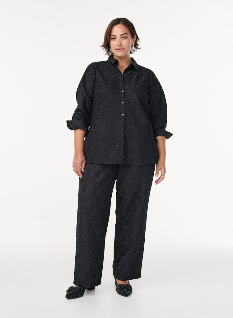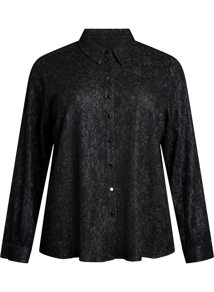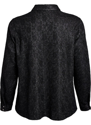 Skyrtan er svört í grunninn með silfruðum glitrandi þráðum sem gerir hann líka extra sparilegan fyrir jól og áramót.