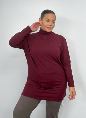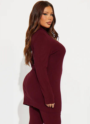 Bolurinn er aðsniðinn og er með háum kraga.