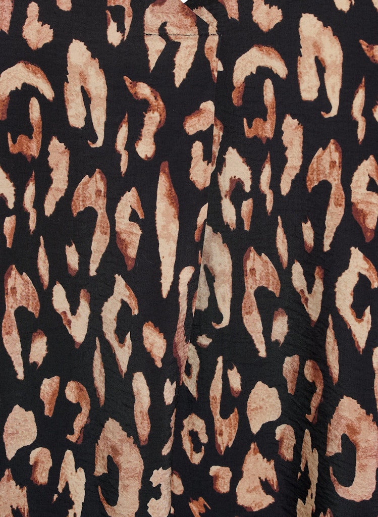 Kjóllinn er með V-hálsmál og er með lausu klæðilegu A-sniði