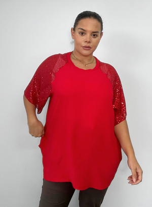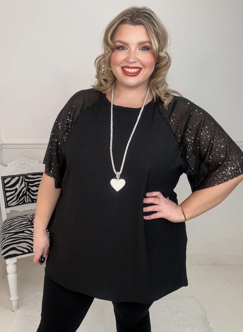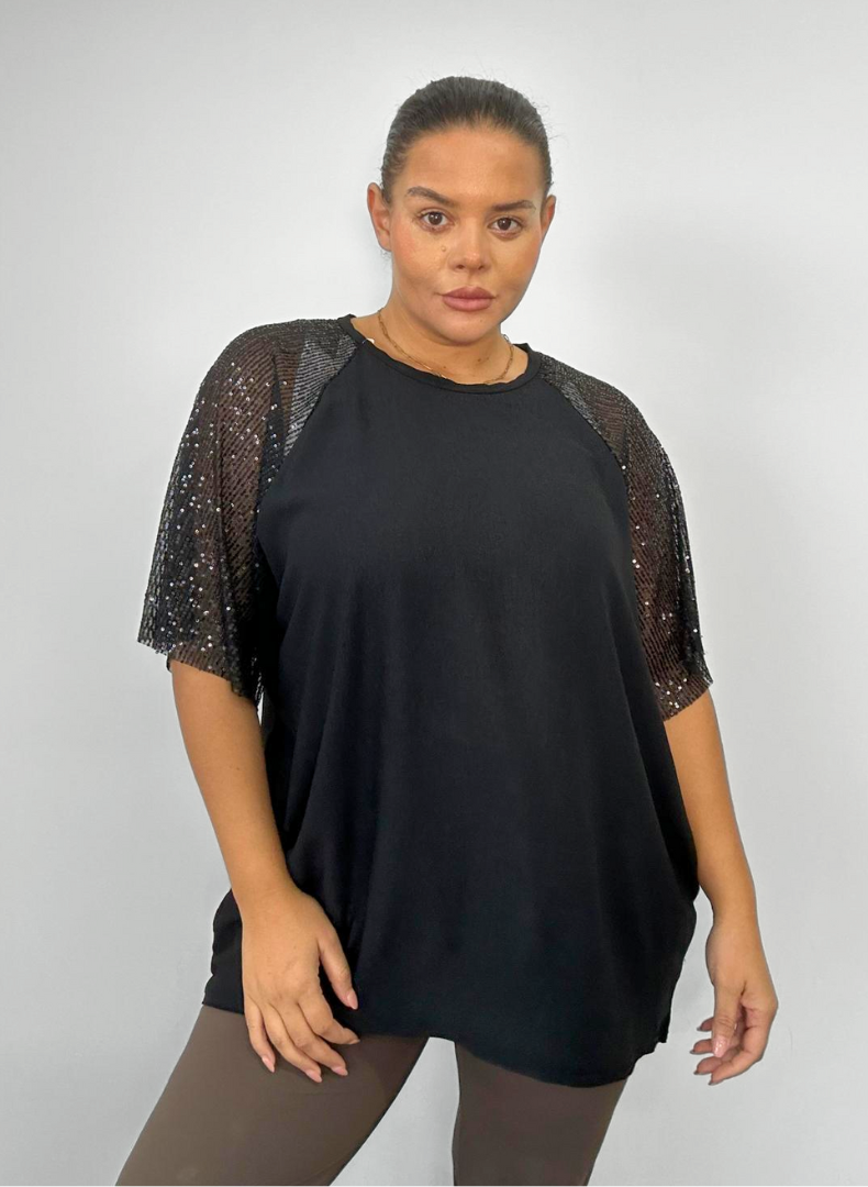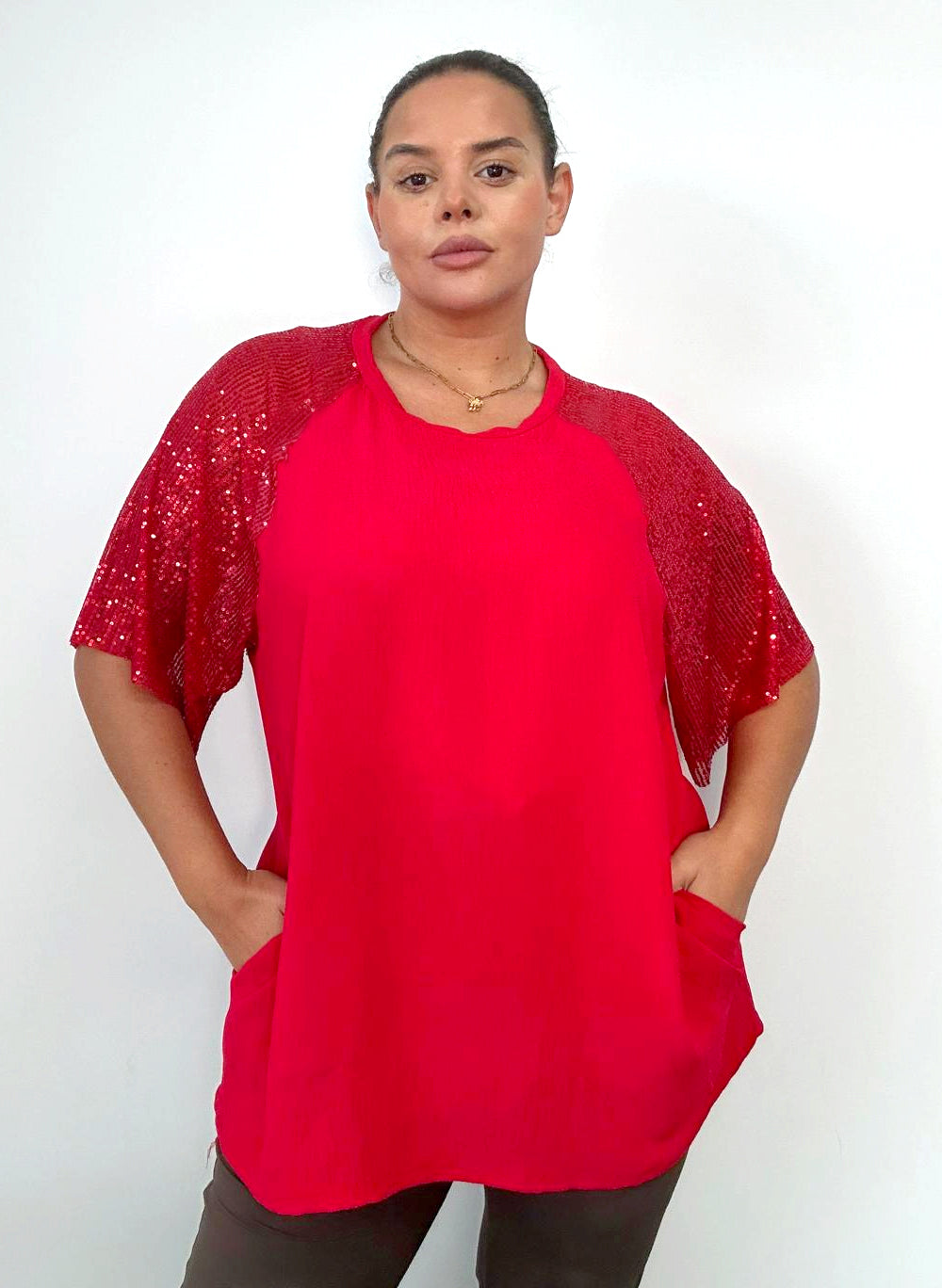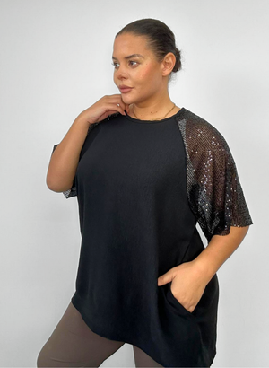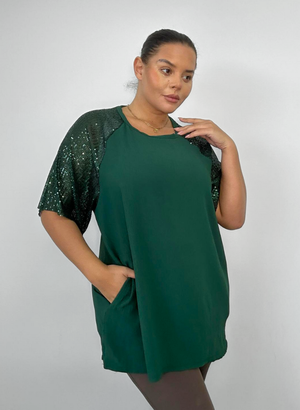 Léttur siffon og pallíettu toppur eða túnika með vösum á hliðinni.