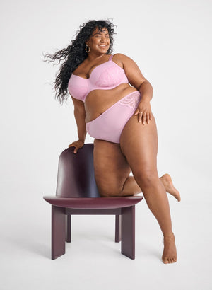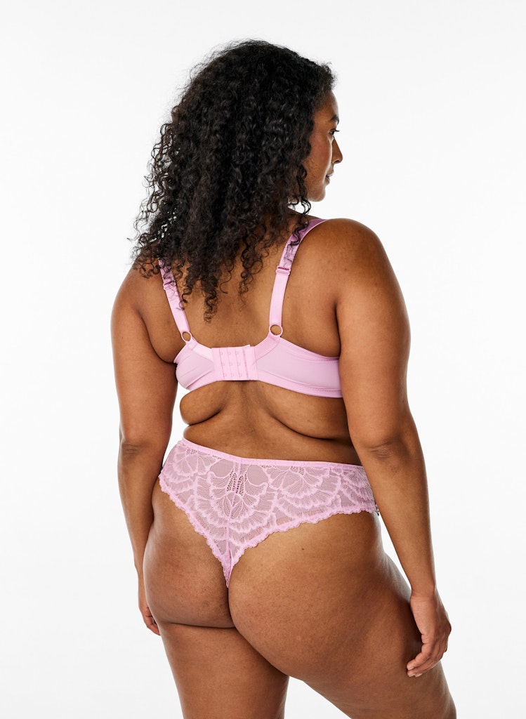 Ljósbleikur fallegur blúndu g-strengs nærbuxur frá Devoted - undirfatalínu ZIZZI.