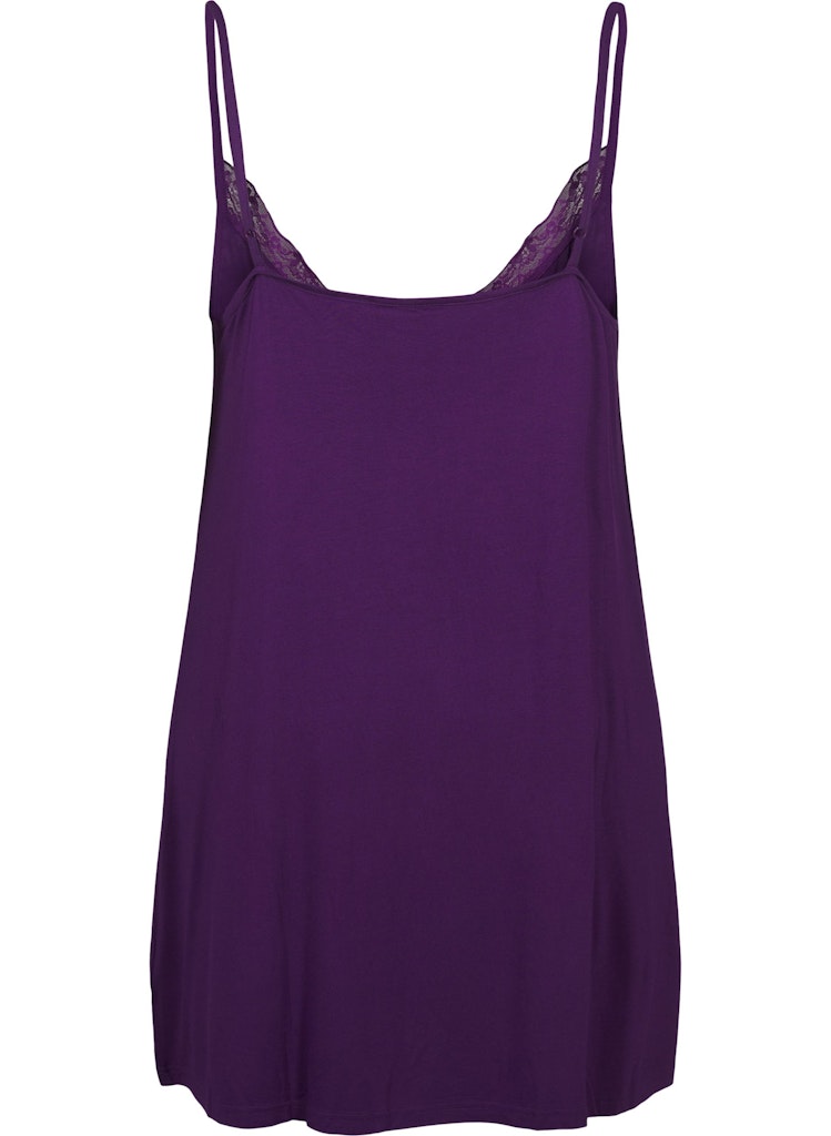 V-hálsmál og grannir stillanlegir hlýrar með fínlegri blúndu sem skreytir hálsmálið.