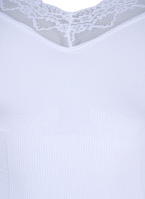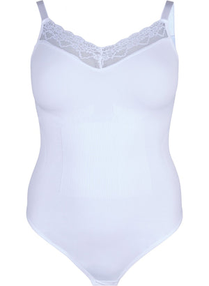 V-hálsmál með blúndu að ofan, góðir stillanlegir hlýrar.