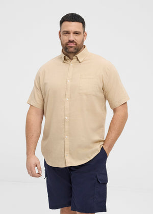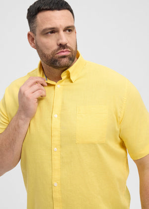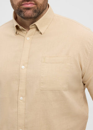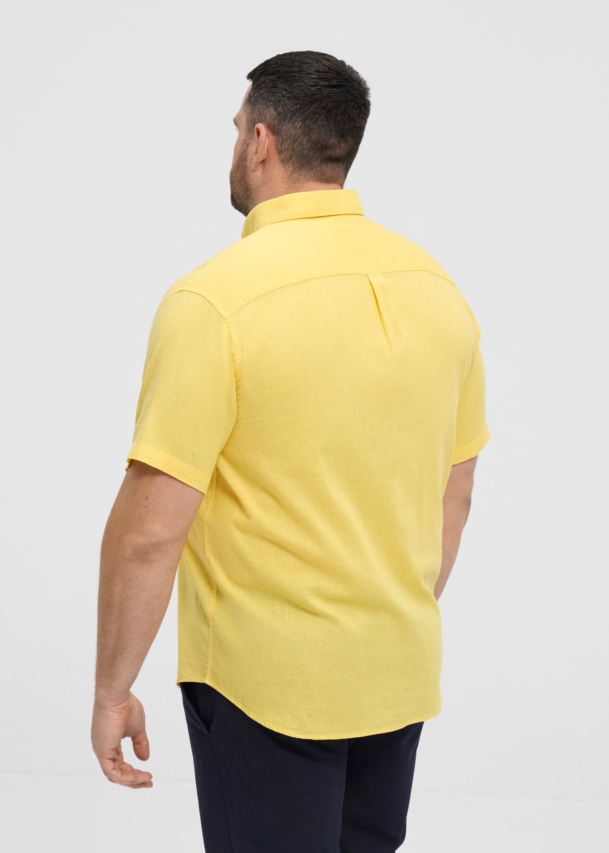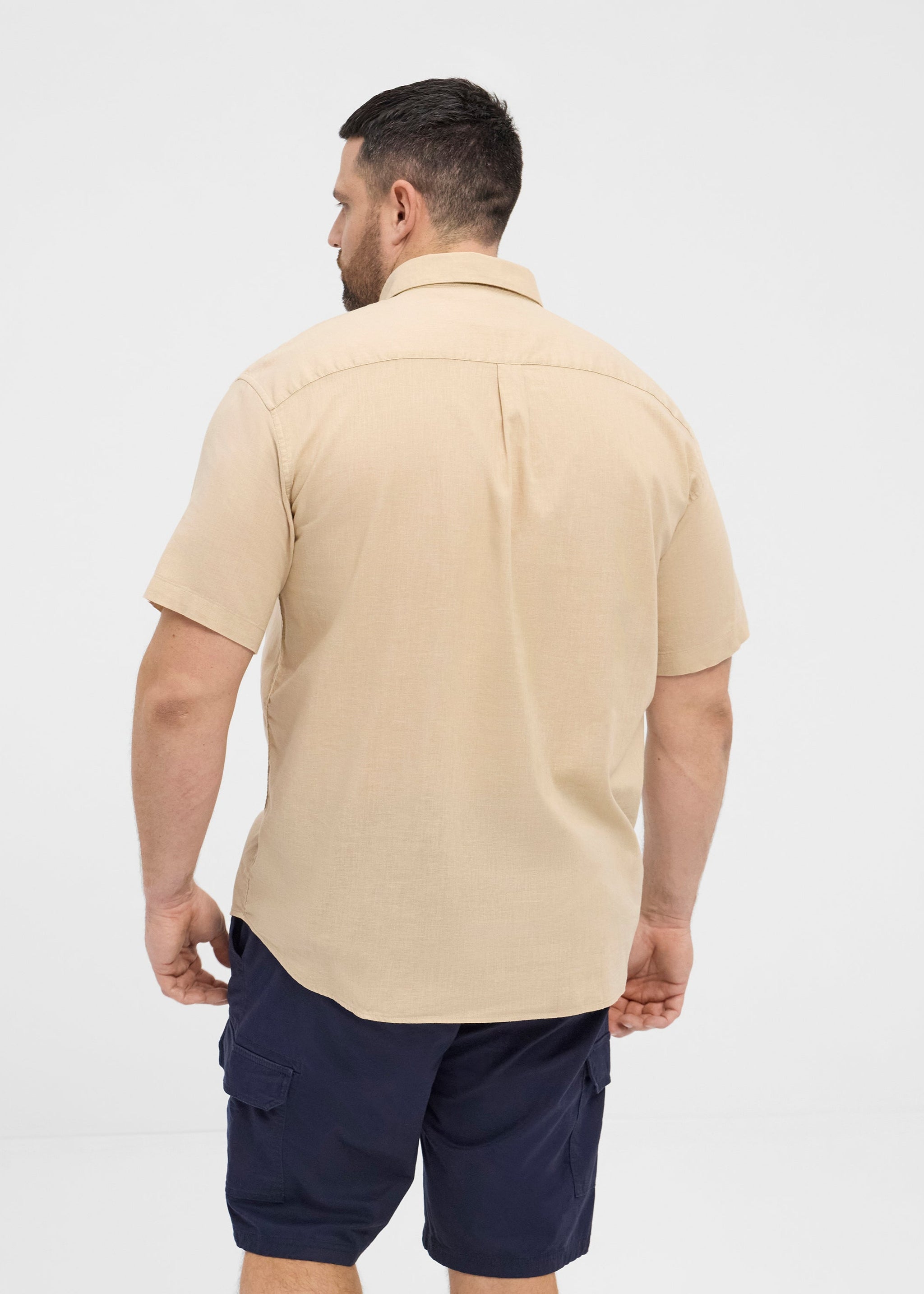 Skyrtan er úr náttúrulegu efni sem andar vel 70% bómullar og 30% hörblanda.