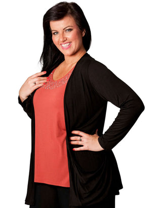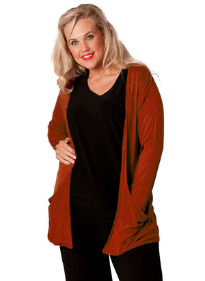 Þunn og létt opin peysa úr teygjanlegu viscose efni (95% viscose og 5% elastine)
