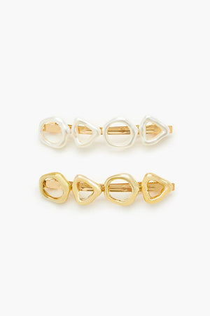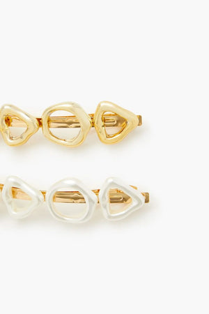 Sumarlegar hárspennur með gylltu og perluhvítu skrauti.