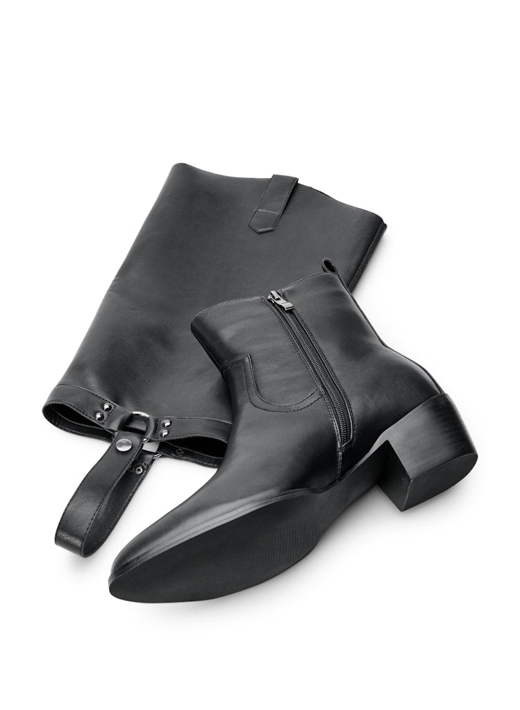 Ótrúlega sniðug stígvél frá Zizzi sem þú getur breytt yfir í ökkla stígvél með einu handtaki, en það er smella á hliðinni þar sem þú getur losað efra stykkið á stígvélinu svo þau verða að ökkla stígvélum. Mjög auðvelt!!