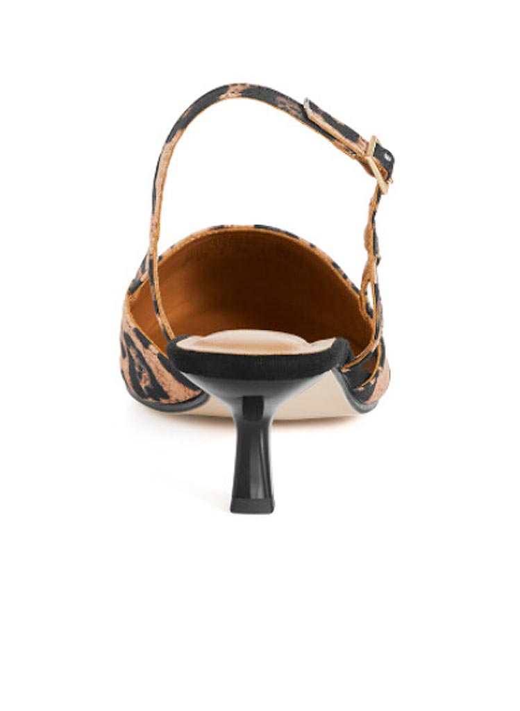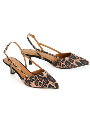 Geggjaðir hlébarða hæla skór eru með WIDE FIT sniði.